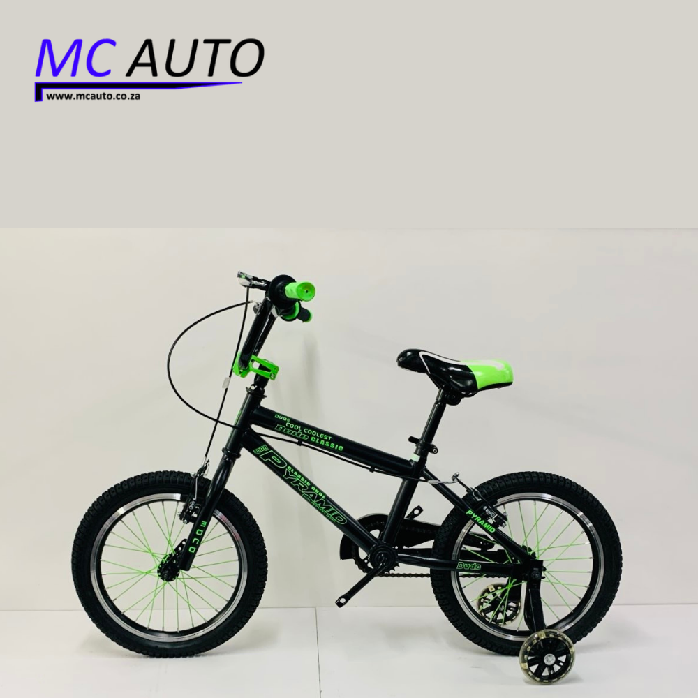 The Pyramid 16” BMX is a great starter bicycle designed for young riders learning to cycle. Built with a strong steel frame and 16-inch wheels, it offers durability and stability for everyday riding.